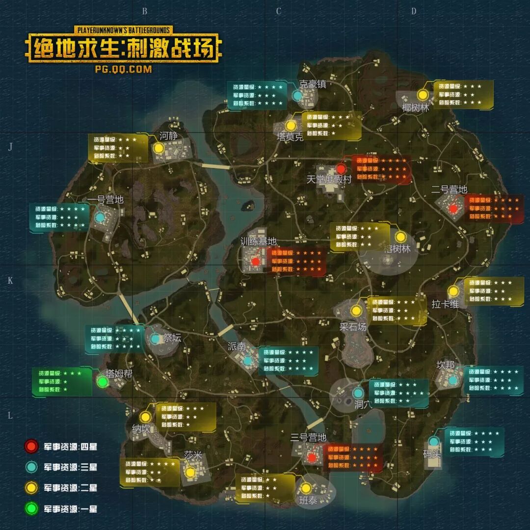 高级资源点大部分处于地图的关键位置,区域不仅物资丰富,并且载具较多,交通便捷。但落点人数着实过多,一般为刚枪玩家首选。