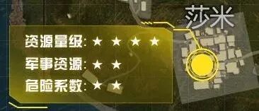莎米 : 资源量级4,资源等级2,位置贴近地图边缘,建筑密集,搜索快捷,落点人数一般,危险系数2。