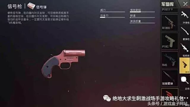 不过说实话从刺激战场7月5日早上更新到昨天下午5点之前,真没见过信号枪。就在昨天下午5点过后,陆陆续续很多玩家都捡到信号枪,和游戏盒子小编同个队伍的玩家都说捡到信号枪,而且在一次抢空投灭了一队,舔包搜到三把信号枪。但2发信号弹都给队友拿去了,我有枪无弹也是难受哇。