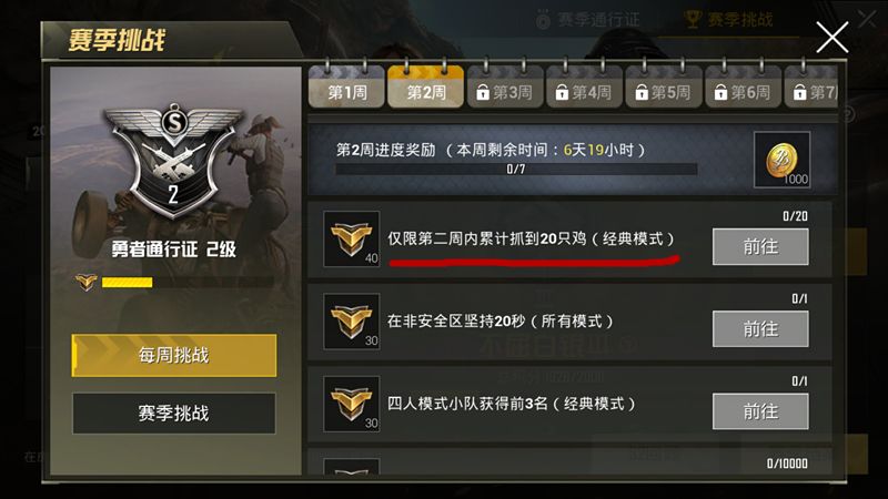 其实有心的小伙伴就会发现,这其实就是赛季通行证的任务,在第二周的赛季任务中,有一项任务就是需要玩家在经典模式中收集20只鸡(话说20只鸡吃不完啊),达到任务要求的玩家可以领取赛季通行证奖章,这个任务仅限这周,以后就不会遇到了,所以各位小伙伴可要善待这些鸡仔哦(好气,萌鸡酱打了好多枪都打不死这些鸡仔)!