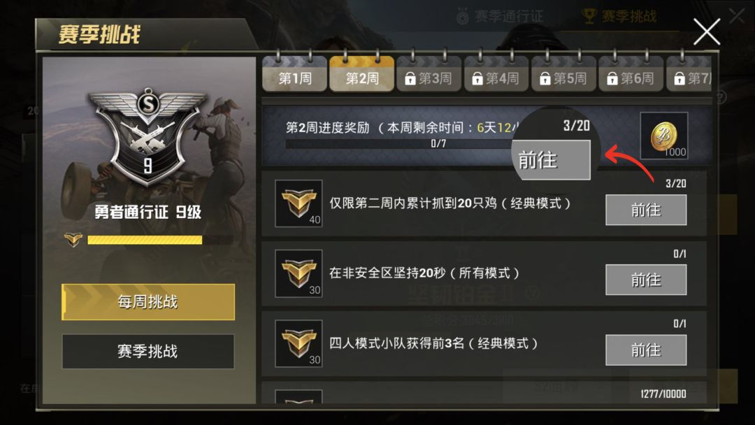任务解读一 第二周 赛季挑战时间内 , 经典模式 中累计抓到 20 只鸡 此任务 仅在 第二周的挑战时间内 有效 哦,鸡友们抓紧时间速来捉鸡,完成任务。