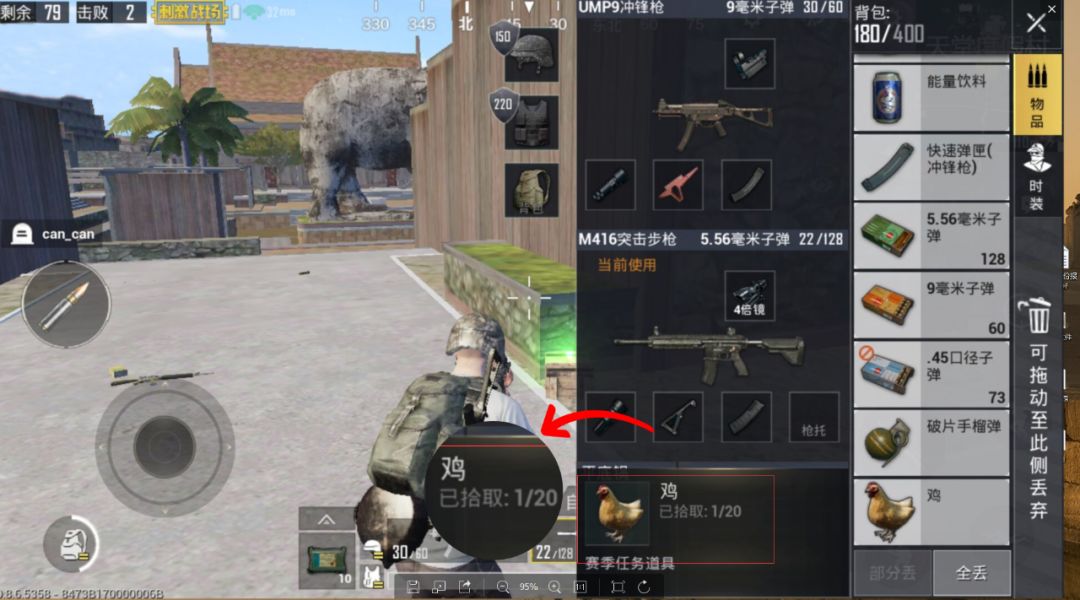 1.收集的鸡要 一直放在 背包内 ,战斗 结束后 结算完成才为 有效 的收集数量。并且鸡是不会占用背包 容量 的,鸡友们可以放心收集 ; 2.当鸡友们已经完成了20只鸡的收集数量时,可以将多余的鸡 拾取 到背包里然后 扔给队友 来 帮助队友收集鸡哦; 3.当鸡友们被敌人 淘汰 时,所收集的鸡 不会掉落 在盒子里,即鸡友们无法通过淘汰敌人来拾取对方的鸡; 4.战斗中 背包 内显示的数量是 当局 鸡友们收集鸡的数量,而 累计 数量要在 周进度栏 里查看哟。