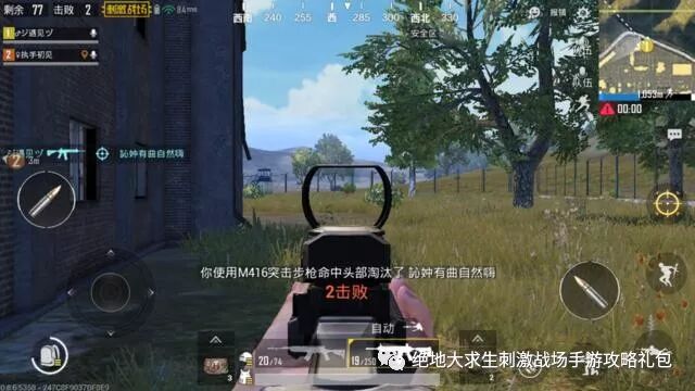 场景1中,处于楼顶的我们只需要蹲下或趴下,就可以直接规避几乎所有方向敌人的攻击。场景2中,白圈边缘的针对圈外的敌人,处于圈内的我们没有跑圈的后顾之忧,因此面对跑圈的敌人我们只需要保证我们的射击精度就好。总而言之就是一句话,良好的进攻一定是建立在稳固的防守之上!因此除非迫不得已,一定要避免盲目开枪,尽可能创造出单方面打击的环境,方才是真正的吃鸡之道!