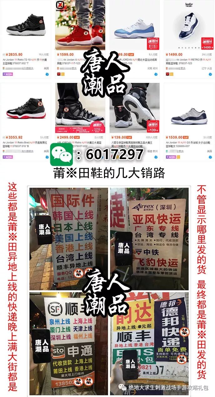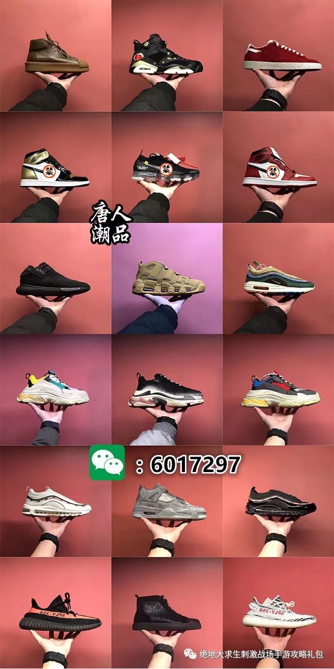 +微信 6017297 交流 接触莆田鞋却已经有四五年了,刚开始接触,纯粹是由于好奇加委屈,因为我刚花1099买了一双明星上脚款的AF1,一星期后我朋友告诉我他和我一样的莆田鞋才300多块,我却看不出有什么区别。