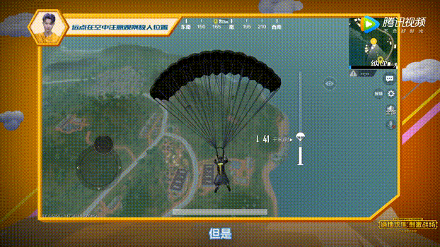 当我们 荡伞 往远处降落的时候,就需要在 空中 观察和记住敌人的落点了。因为远点降落我们 无法 拉开太多时间优势,所以 避免 降落在敌人所在的区域,并寻找一个 有利 的地势,显得十分关键。