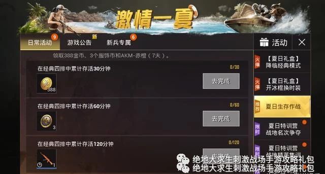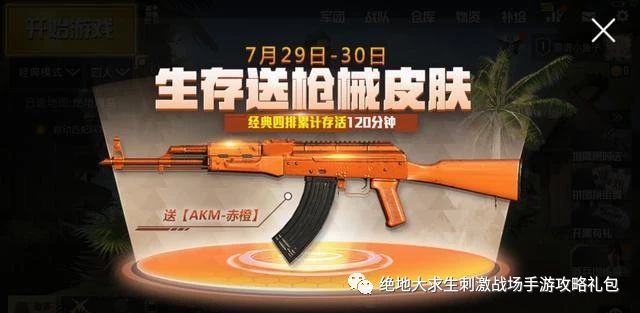 这活动要求是需要玩家 在经典四排中累计存活120分钟 ,才能获得。这时候就要邀请上三五好友,进行“苟到底”的战争了。 不过,其实也不算太难,很快就有网友完成了这个“夏日生存作战”的活动,并且真的拿到了AKM赤橙。但是!只有7天的使用权。