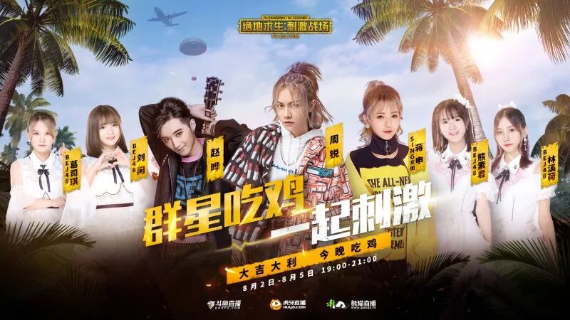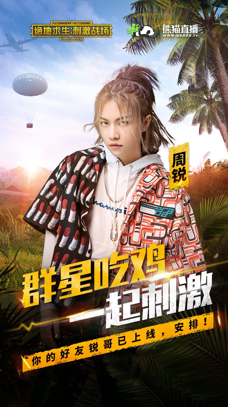 周锐 新晋歌手,他将于 8月3日 在熊猫直播间与大家不见不散。同样作为 中国内地流行乐男歌手、吉他手、音乐制作人的 赵晔 ,他将在 8月5日 斗鱼直播间和大家一起刺激吃鸡