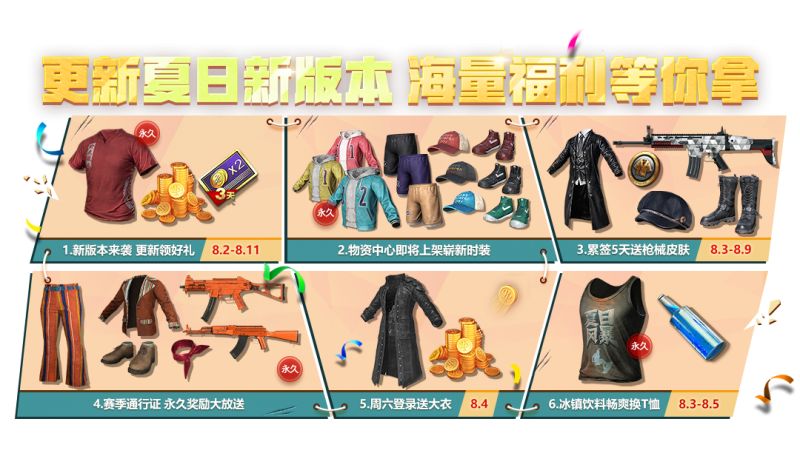 活动时间: 8月3日 0:00-8月5日 23:59 活动期间,各位鸡友只要在任意模式中累计存活相应时间,即可领取冰镇饮料。