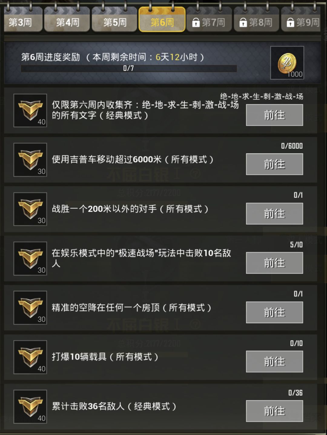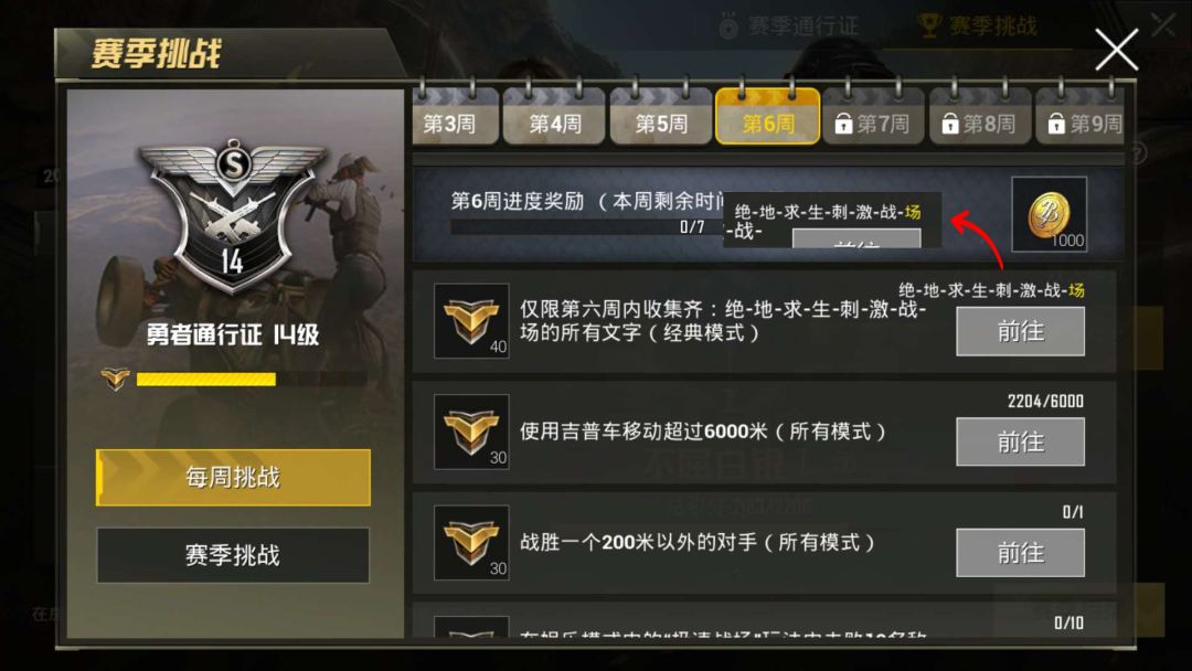 新的一周内,鸡友们需要在 经典模式 中集齐 绝-地-求-生-刺-激-战-场 这八个文字石板。小白裙提示大家这个任务仅限第六周哦,也就是八字石板必须在 下周三前 集齐!