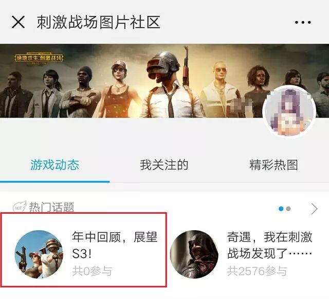2、进入【刺激社区】后,点击 《年中回顾,展望S3》 活动,【 参与话题 】即可发表动态。