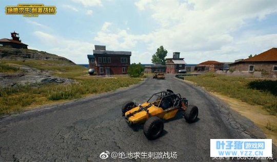 老铁,快上车,这辆车跟PC版绝地求生里的车是一样的性能还不错。