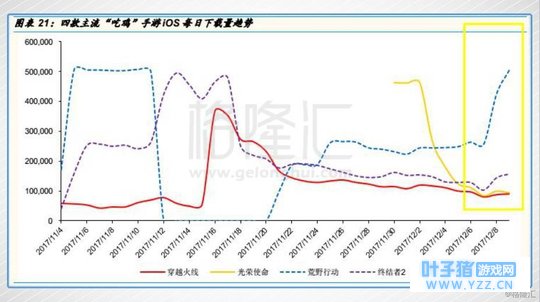 那么,腾讯和网易,谁才是真正能吃上“鸡”的那个? 从内部信中的数据来看,无疑,网易占取先机——《荒野行动》注册用户破1亿,日活跃人数超2000万。要知道与风靡全国的《王者荣耀》相比,达到2000万日活,《荒野行动》用了不到90天,而《王者荣耀》用了13个月。 所以,网易是如何做到的?吃鸡之争是否局面已定? 1、网易憋出来的大招 ——偷腾讯的鸡 整个游戏市场宏观大趋势的改变直接引发的是市场生态的转变!在移动游戏市场用户红利殆尽,竞争格局逐渐固化的背景下, 打破市场平衡的“爆款”成为驱动移动游戏市场增长的重要因素。 陷入中年的网易,比谁都急需几款爆品来焕发自己的生命力! 吃鸡游戏—《绝地求生:大逃杀》在全球现象级火爆,让郁闷的网易看到了希望之光!“在与腾讯厮杀代理权的正规道路中败北后,网易凭借自身积累的研发优势和精准嗅觉,火速的开辟了条野路子!在腾讯出手之前的这个空隙,网易首先在自家研发的手游《终结者2》上改版加入吃鸡类游戏的核心元素——逃生模式,先发制人!结果也证明,网易这一招效果杠杠滴!11月4日上线以来《终结者2》获大量“吃鸡”玩家认可,一度占据游戏榜单首位。看到这个形势,腾讯慌了!急急忙忙地往《穿越火线》手游版本上加入逃生模式来应对,等到上线时间也到了11月15日,比网易的《终结者2》晚了11天,虽然用户反映还不错,但如此长的空白时间,被网易第一波收割下来的玩家量已经不少,腾讯栽了个跟头。
