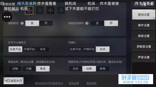 我们再来看看设置界面 这部分等大家上手了游戏 一定要根据自己的配置来设置 陀螺仪什么的当然看自己的习惯 轰炸区也会有提示 注意也别被炸死 当然就想观众老爷们说的一样 没有第一人称