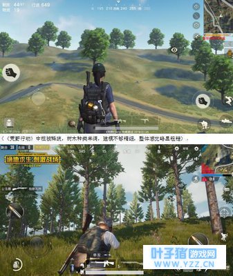 (《绝地求生:刺激战场》中的环境表现则可圈可点,光影效果、环境建模、良好视距都相对显得体验更好) 同时,从人物建模乃至服饰细节上都能看到《绝地求生:刺激战场》的用心,甚至能发现人物身上的肌肤纹理,以及服装褶皱跟随动作的细微变化。