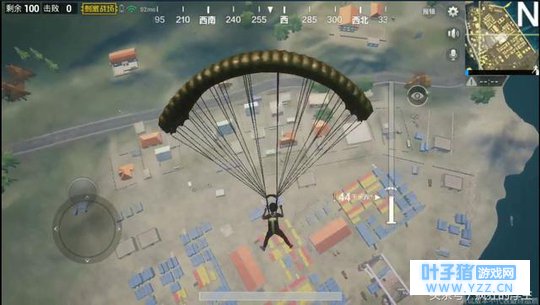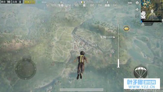 跳伞 左手移动,右手瞄准、开枪。这里有一个小细节,左手按住方向键超过1秒钟,便会出现奔跑按钮,此时玩家只需要向上滑动便可以切换为奔跑模式。