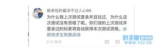 按理说二测了游戏应该已经差不多了,刺激战场的套路肯定是不一样的,大家测试资格没有,游戏没优化好,反而是bug成套成套的爆出:无法吃鸡,最后只剩下队友游戏还没结束最后只能被毒死;组队时队友没标记还以为是敌人生生打死了;人物动起来笨重经常卡顿……