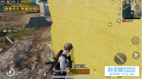 (图为《荒野行动》游戏截图,射击车胎反馈不明显) 除此之外,《荒野行动》中饱受诟病的穿模问题在《绝地求生:刺激战场》中也被很好的解决了,游戏中人物在移动到障碍物附近时,会自动触发“收枪”动作,由此避免枪械穿过墙壁在另一侧露出来的尴尬场面。
