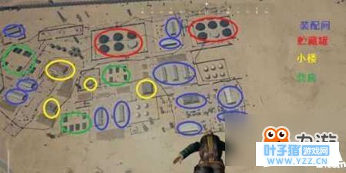 紫色是装配车间区,这个里面至少有一把枪,是最应该先搜的地方。
