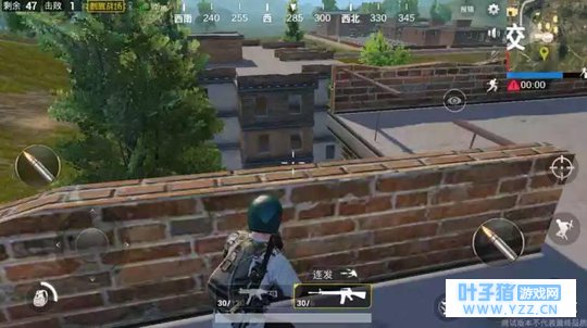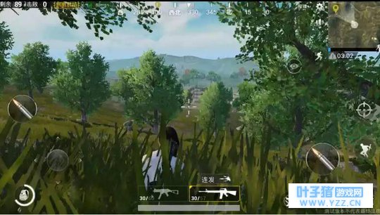 落地后可以看到,地图还是和绝地求生有些差异的,毕竟一个手游一个端游,刺激战场里面的草丛很高,人趴下后真的有一种谁都看不到我的感觉,这一点我觉得挺不错的。