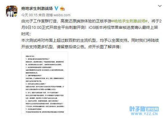 光子研发的刺激战场官方公告,同样也是安卓和IOS都能玩。