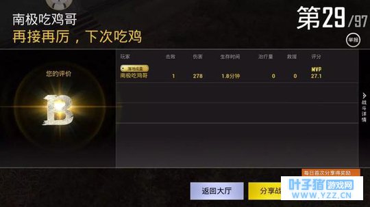 以后玩吃鸡要收集各种成绩,升级成为特种兵,每局争当MVP,每月冲分上王者了。早日上分,带队友吃鸡。 总得来说,刺激战场体验满分,各方面还原端游体验。就是有时候感觉有点卡,尤其是开车的时候。吃鸡哥用的是魅族Pro,不知道其他玩家感觉如何? |