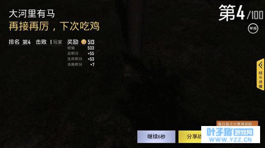 游戏结算界面,遗憾未能吃鸡=。=(河马也很绝望,就只看到俩人,一个我打死的,一个打死我的......) 下面看一下《绝地求生全军出击》