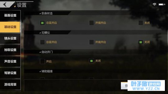 设置界面,可设置内容相似不多说,载具驾驶模式只有两种,均是左侧控制方向右侧加速,重点吐槽基础设置中的第三列自动开门,该模式默认开启!河马天命圈正想偷袭,移动到房门时房门自动开启瞬间被对手察觉,一首凉凉送给自己(心中一万只羊驼奔腾)。