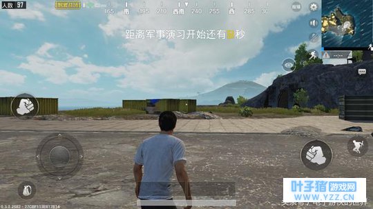 小编喜欢玩单人模式,选择的是单人模式进入的游戏。这就是玩家们的出生岛了,倒计时开始了,果不其然大逃杀被改成了军事演习。