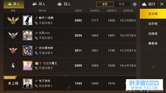 游戏中还可以查看排行榜,看看自己在所有人中的排名情况。还能统计自己玩这个游戏玩了多长时间。小编只打了一场,肯定上不了榜的了。