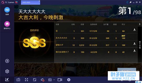 游戏画面流畅稳定 就是之前看很多游戏主播直播的时候用的这个电脑玩手游神器TC Games手游助手,玩了几把,吃了3把鸡,爽得一比。不占用电脑配置,并且已经有系统设置好的游戏快捷操作键了,直接玩就可以了。它们的游戏中心可以直接下载刺激战场,如果手机上已经有了就不用再下载了,推荐想在电脑上玩绝地求生:刺激战场又想匹配手游服,电脑配置不够的玩家可以试试。PS:只有安卓玩家可以这样玩哦,IOS目前好像不行.......