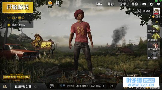游戏界面 为了彰显“ 骚浪贱 ”的本质,小编特意选了个黑人外加暗红色的爆炸头,配上官方赠送的“大吉大利”短袖,骚气简直快要溢出屏幕了。游戏的整体色调偏暗,初始界面中各个选项一清二楚,甚至连 “赛季” 都已经安排在内。