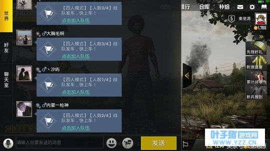 聊天界面 聊天框更是简单粗暴,你可以在世界频道直接加入其它玩家的队伍,当然你也可以自己发送组队请求,指不定遇到 大神 带你吃鸡!