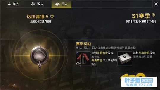 每个赛季结束后,所有参与过比赛的玩家,将根据 其在单人、双人、四人模式中所达到的最高段位,获得对应的宝箱奖励。达到黄金段位可换得上衣服装,达到热血青铜段位可以获取治疗包一箱。 上面就是S1赛季结束时间与奖励介绍了,更多绝地求生刺激战场手游资讯攻略,敬请关注! |