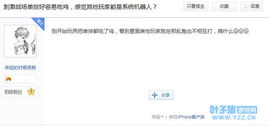 有网友在贴吧上询问为啥感觉在这两个版本的吃鸡手游上会感觉吃鸡很轻松,感觉对手很弱智!结果没想到有相同感觉的人很多。然而这并不是变强了,而是因为对手是AI机器人,嗯还是新手级别的