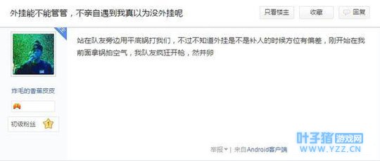 似乎还有更牛的外挂,“平底锅无敌挂”,这是我们初步自己DIY的一个名字,具体描述,就是疑似玩家通过一些外挂设定,可以让自己在锁血的状态下,手持平底锅贴脸击杀其他荷枪实弹的玩家。而挥动平底锅的过程疑似也有外挂参与,因为有玩家反馈称,他遇到的被平底锅团灭,手持平底锅的玩家也会有砸歪、砸空的情况,会疯狂地砸空气,疑似这挥动平底锅攻击的过程也有外挂参与。