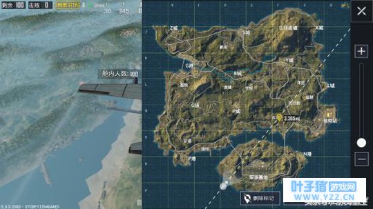 《绝地求生:刺激战场》为我们标记了航线和相对距离