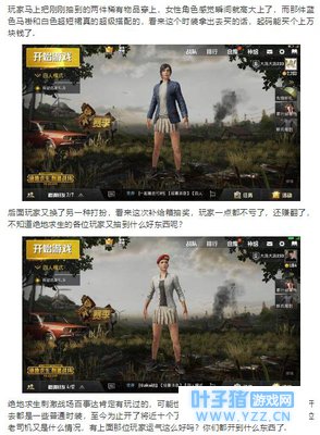 叶风皇8:这又不是steam上的绝地求生,你就算开出连帽大衣有什么用?又不能卖,我电脑上开出的口罩卖了2400。这里面只能当个装饰品,没用。 听哀伤旋律:有个疑问刺激战场为啥只送短裙呢?那男性角色咋办?也都穿着短裙? 毁情侣狗:嚯嚯嚯我选了个男的把旗袍短裙啥的都穿上了。 |