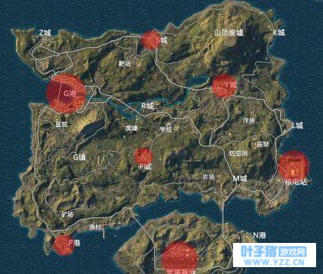 高级资源区 主要集中在Y城、G港以及核电站,颜色越大表示资源越多。适合喜欢冒险和爱刚枪的玩家。当然收获越大,风险越大,一不小心就落地成盒。快递哥就非常喜欢跳核电站,优先去紫色那栋最大的建筑,资源非常丰富。核电站往前面走还有一栋4、5层的工厂,搜完简直肥得流水。 注意:捡拾物品要注意避开窗户,以免会被爆头。