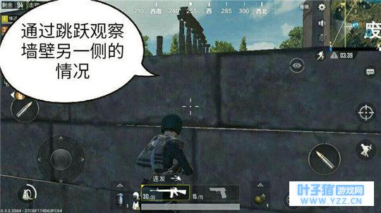 在高坡上也是有着废墟的建筑的,小伙伴们在这里可以观察敌人的位置了,半人高的墙壁可以很好的隐蔽小伙伴们的身形。在这里想要获取更大的视野是不建议蹲下的,小伙伴们可以左右移动来观察下方建筑是否有敌人,这样也能避免被狙击枪一枪淘汰的尴尬。如果遇到敌人的攻击,果断的蹲下敌人是无法对我们继续造成伤害的。而后,蹲下后慢慢的向着另一侧位移,并且在移动的过程中找到敌人的位置,在确认敌人后直接站起攻击敌人。敌人很多时候都会以为小伙伴们在原来的位置,却不知到小伙伴们早已经换了位置并找出了敌人的方位,打敌人一个措不及防。