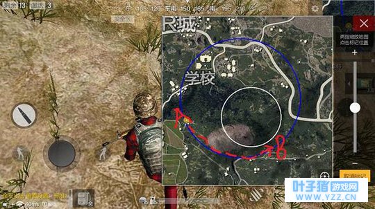把控好时间 秘籍二:跑毒,根据上文攻略一,再第一波毒就要来到时 你估计也有不错的装备了!如果不太好就根据自己的药品选择顶毒搜还是进安全区!进安全区要找一个有一两栋房子的地方!迅速下车小心进房埋伏别人等刷毒!反之如果你去山上别人很容易根据你开车的声音埋伏你狙击你!去城房区很容易被集火!在前几波毒刷完后活着的人不超过40个时,跑毒就就要大大注意了!看好刷毒时间如上图所示假如你在A位置不要直线进安全区要沿着虚线贴着毒圈从B位置进圈!这样你不需要注意圈外的方向且避免很多遭遇战!遭遇战大家也知道,即使杀了一个敌人 战斗的声音也会暴露你的位置继而引发更多的遭遇战!杀一个已经不易,战斗完状态不好的你还能杀第二个第三个吗?
