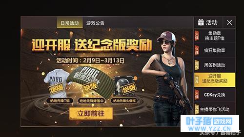 参加开服狂欢活动 开服狂欢活动可以获得 绝地先锋头像框 (3天登录游戏获得), 绝地先锋降落伞 (在游戏中获得20次前30名获得), 绝地先锋T恤 (进入游戏完成30场战斗获得)。 活动截止至03月13日,想要这三件套的小伙伴可以去完成相应任务。