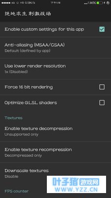 重启后打开软件 选择刺激战场 第一项Enable custom settings for this app打勾