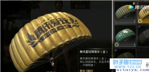 很多玩家仓库库存不多,降落伞基本上只有一个,如果是微信玩家,可以直接领取一个微信定制伞面。 飞在天上打开降落伞的时候可以发现有玩家的降落山是黄金色的,一股王者霸气之风,这款黄色降落伞是腾讯爱玩的专属礼包,可以通过爱玩游戏免费领取。