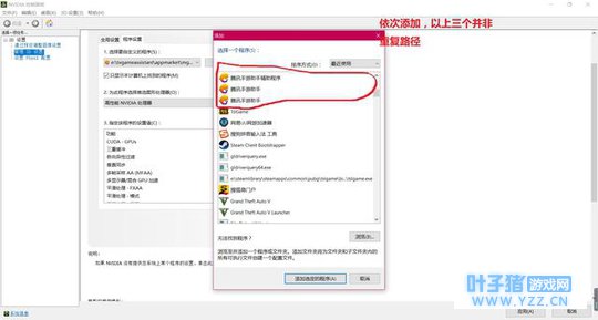 解决办法二(推荐): 同样桌面右键→显卡设置→添加程序中找到腾讯手游助手相关的三个程序→设置为高性能→应用