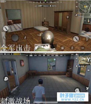3:细节上,全军出击比刺激战场更为全面细致,例如蹦蹦发动机上的火花,瞄准镜会跟着呼吸而晃动,室内贴图比刺激战场的多且精细。