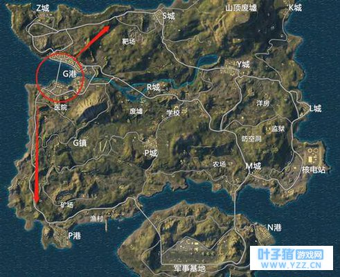 G港资源分布 G港一般分为上城区和下城区,两个城区隔海相望,由一条跨海大桥和一条小桥连接。上城区主要都是街巷楼房,巷战高爆发的地带,建议调上部或者下部,不至于腹背受敌。下城区主要是由集装箱、厂房等组成,建筑物比较稀疏,资源比上城区要来得少一些。不过下城区也有上城区所不具备的一大优势,那就是载具多,刷车点多,有利于玩家及时做出行动,G港位于绝地岛边缘,载具是跑圈必备工具,否则可能就要跑断腿了。 G港战略分析 如上文所说,G港位于绝地岛左侧沿海,假如圈缩在军事基地等较为偏远的地方对于跑圈来说是非常不利的。如果圈缩在地图右下方的话,比较近的路线是绕过山脉路过G镇或者P城,但是G镇和P城也是敌人众多的地段,如果不想以身涉险,建议沿海岸线公路向下进发打野会更为安全。如果是毒圈缩在右上方的话,除了下城区需要过桥比较危险之外,上城区跑圈要更为顺利,不过要时刻提防拦路虎,因为有不少玩家虎视眈眈着从G港搜刮出来的快递员。
