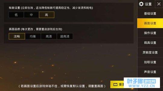 画面设置 游戏内画面设置分为 流畅、均衡、高清、超清。