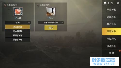好友之间一起开黑或者互赠金币都可以获得亲密度,当亲密度积攒到一定数值,玩家就可以选择和好友建立更加亲密的关系。亲密关系类型:基友,恋人,死党,闺蜜。