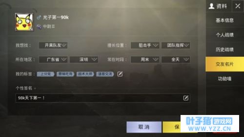 增加了个人名片功能后,还同步优化了添加好友功能,可以通过设置一些参数来进行搜索你想要添加的好友!鸡友可以根据自身需求设置自己的交友目标来寻找开黑队友、师父、徒弟甚至情侣。 通过设置擅长位置,可以让玩家在交友时通过分工搭配的互补组成更加强力的队伍。 还可以设置地区和常在时段,再也不担心找不到一起玩的队友了。 同时鸡友在交友名片界面可以设置标签和个人签名,给予玩家更多展示自我的空间。