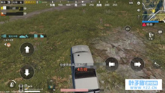 接着上一个三杀小编就已经克制不住自己,换了一辆比较新的轿车开始主动找人并且淘汰对方,意想不到的是成功4杀。(摩托车很难击败敌人,建议小轿车)